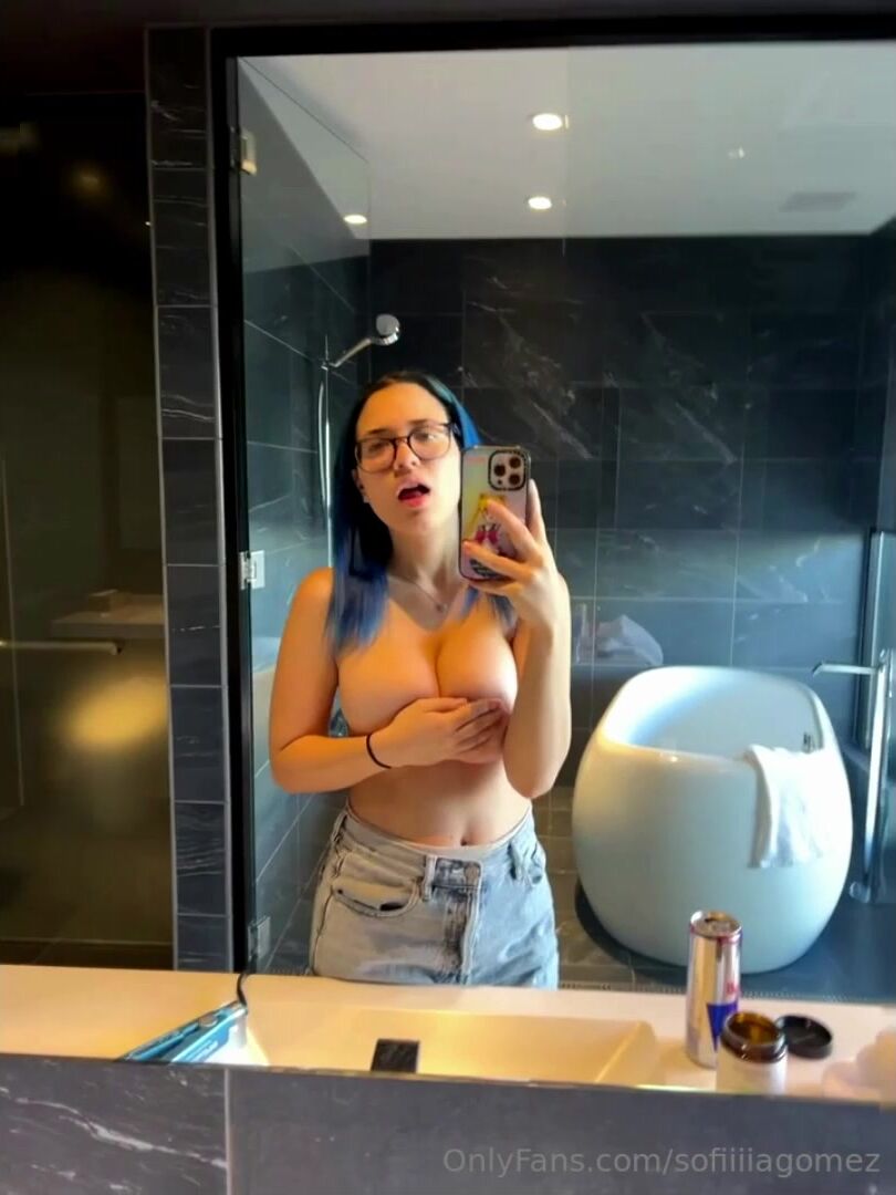 Sofiiiiagomez, sutiã de mão, seios nus, provocação, último vazamento do OnlyFans, PPV, selfie no espelho