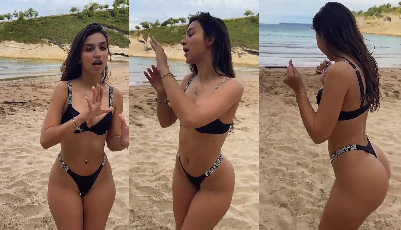 Beldade argentina em chamas exibindo suas curvas na praia. Veja-a tremer e posar em um minúsculo biquíni preto, mostrando sua bunda volumosa e corpo tonificado. Sinta o calor enquanto ela provoca com movimentos sensuais e olhares sedutores. Prepare-se para um show quente na praia!