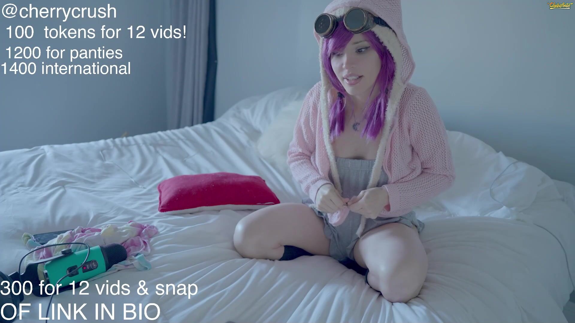 Vídeo exclusivo de transmissão ao vivo com a Cherrycrush em uma provocação de cosplay com uma peruca rosa brincalhona.