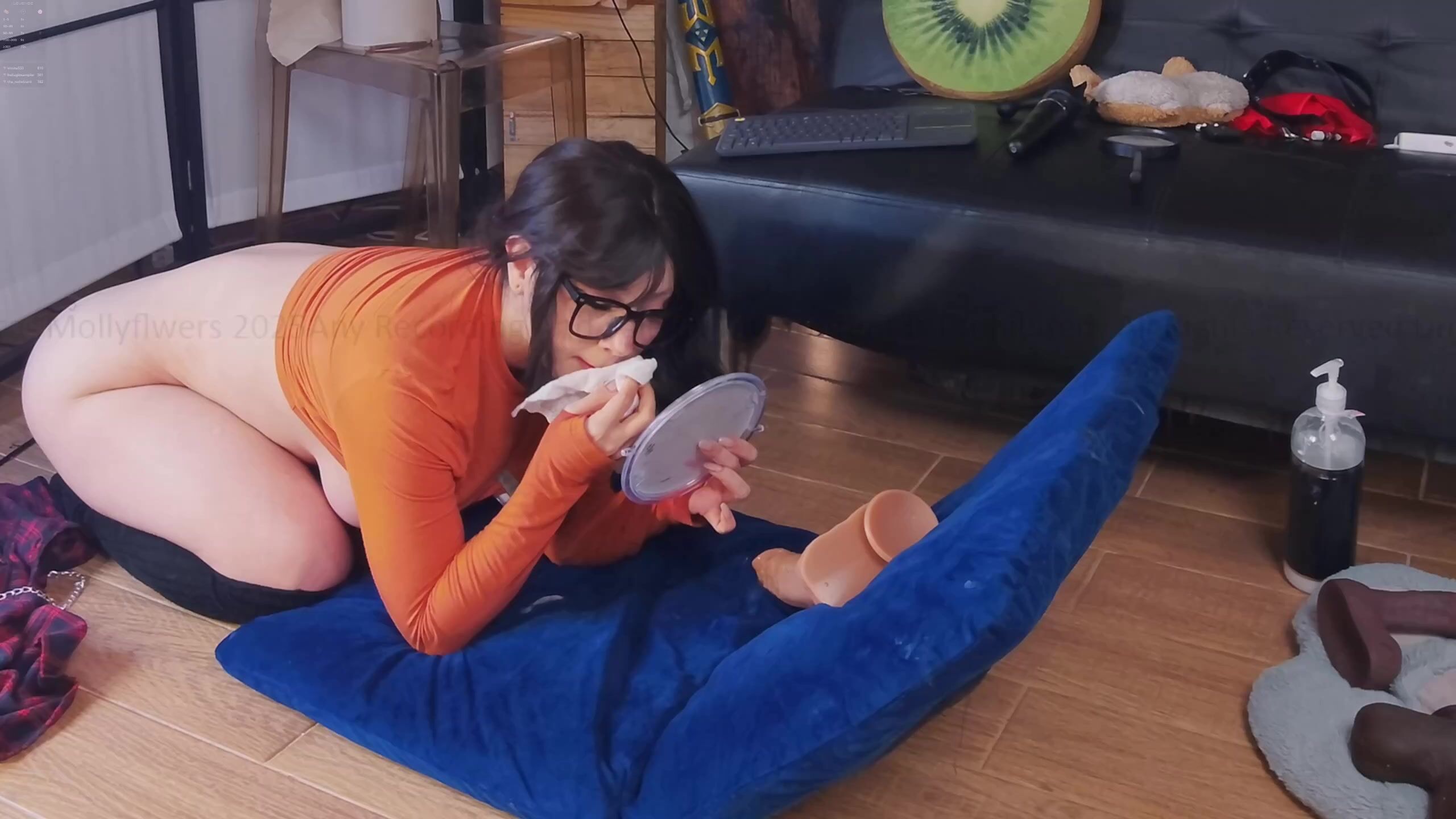 A deusa curvilínea Mollyflwers faz um show safado em lingerie laranja enquanto se masturba com seu dildo neste vídeo irresistível.