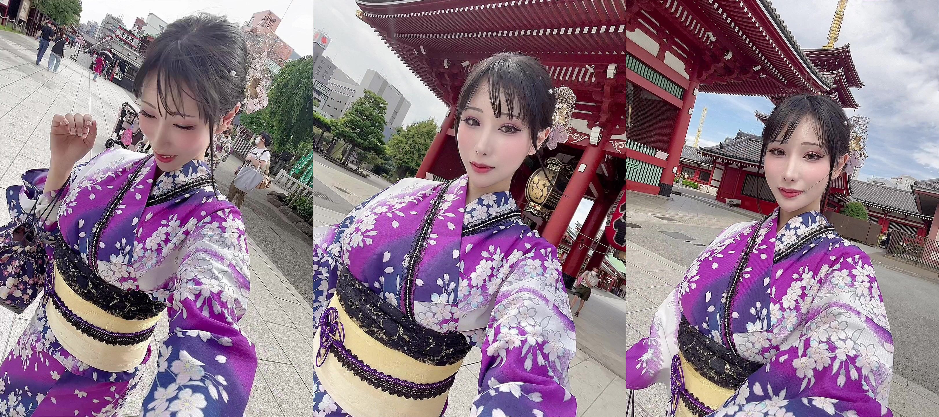 Asian beauty Haneame rocks a traditional kimono in this outdoor tease video.