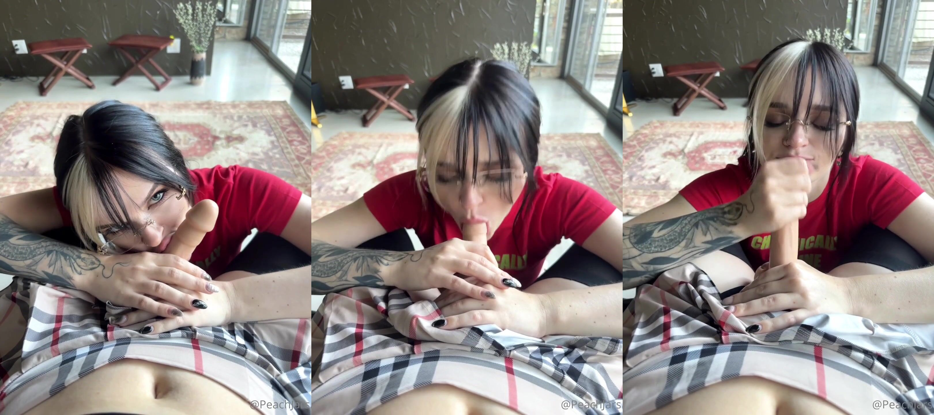 Neste vídeo vazado do OnlyFans, Peachjars exibe suas habilidades em sexo oral com vibrador em primeira pessoa, dando a você um lugar na primeira fila para sua ação de garganta profunda e molhada.