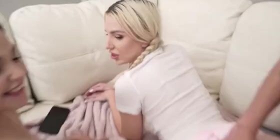 Novinhaninfeta e sua namorada sexy se envolvem com seu irmão adotivo bem dotado em uma cena picante de sexo a três amador.