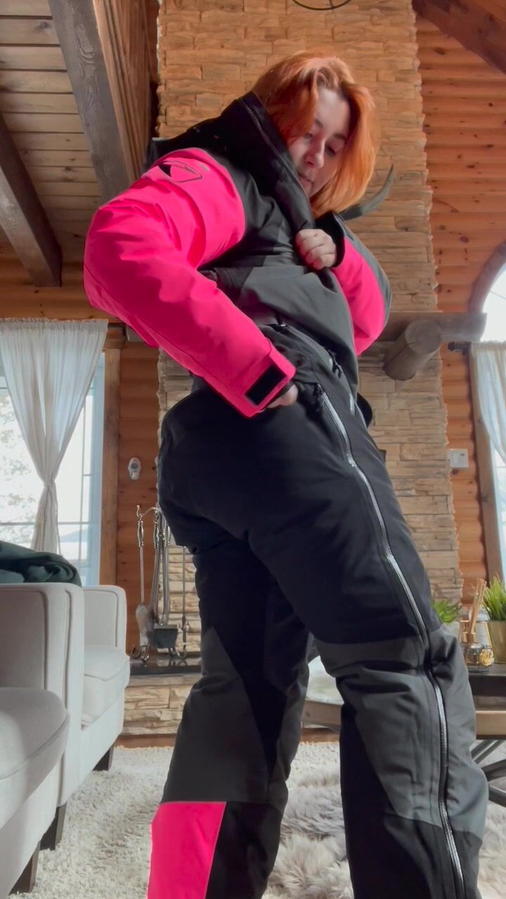 Isla Moon, uma garota de seios fartos, tentando vestir um pijama com jaqueta (vídeo do OnlyFans)