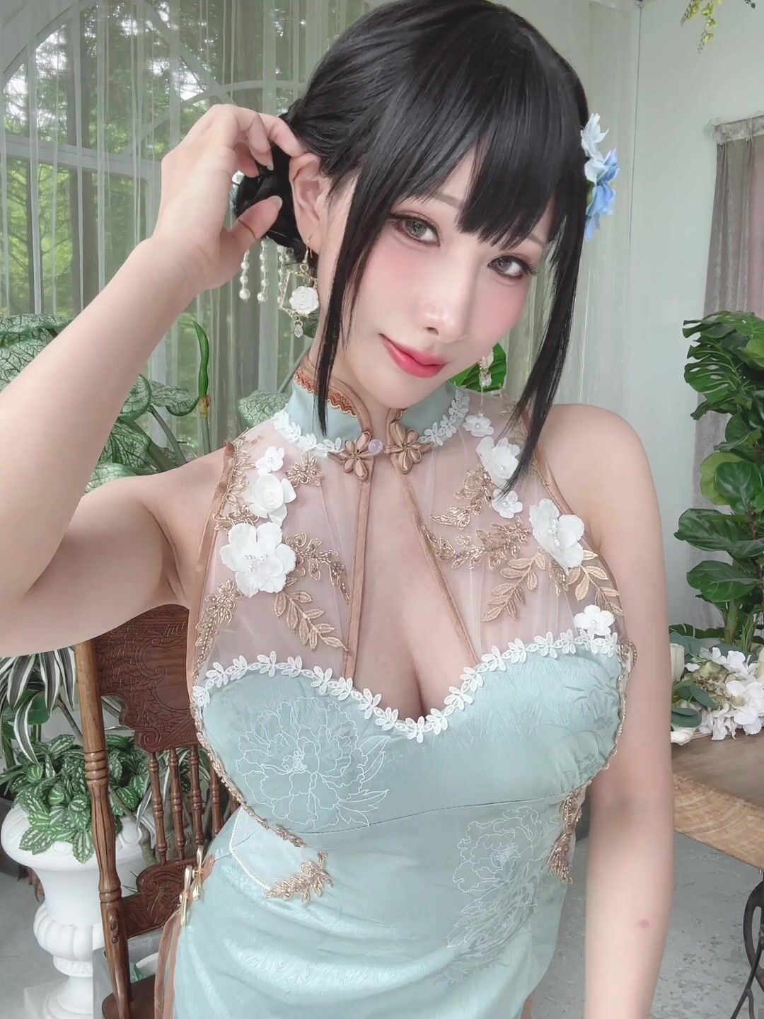 Vídeo original e sexy de Haneame com qipao de jade vazado