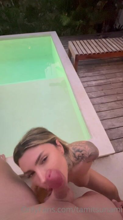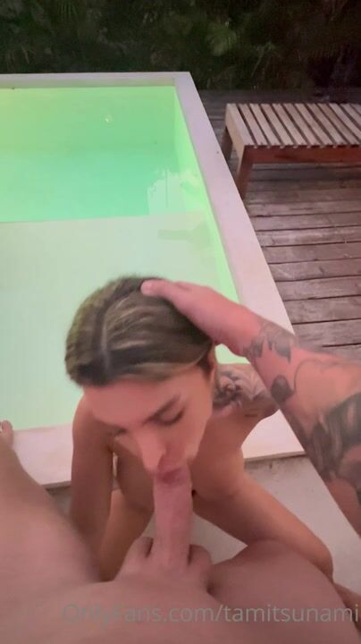 Видео с сайта OnlyFans: Тамицунами сосет член, пока не покроется спермой возле бассейна.