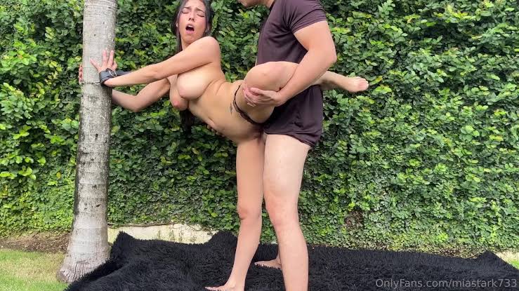 Миа Старк, латиноамериканка с большими сиськами, привязана к дереву и занимается сексом на открытом воздухе.