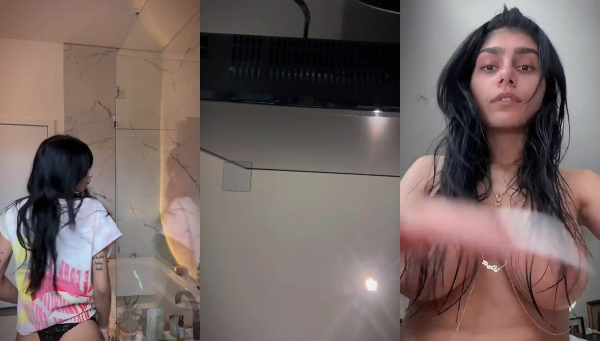 Mia Khalifa дразнит в видео OnlyFans на кухне, демонстрируя свои огромные сиськи в оверсайз футболке
