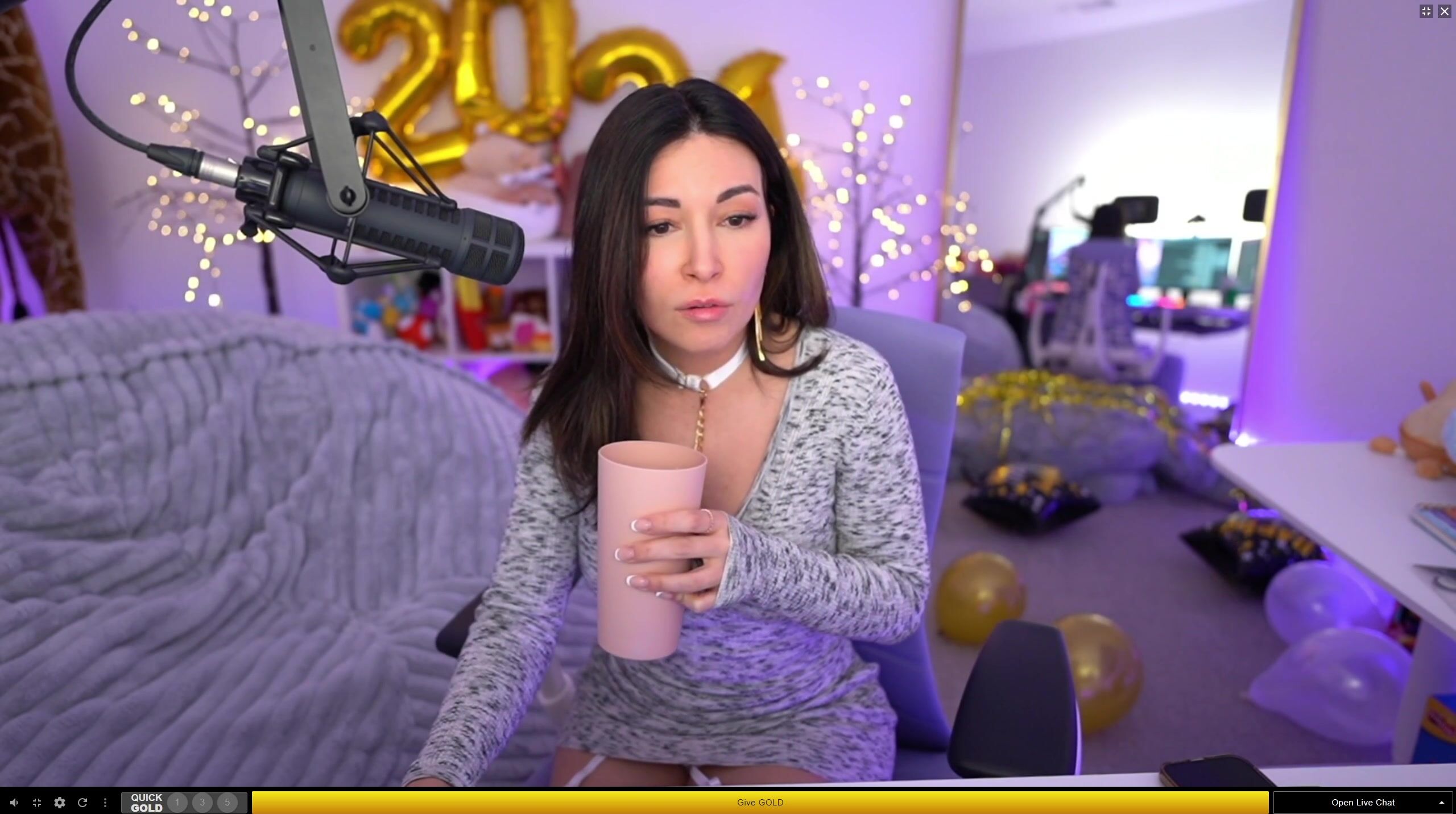 Малышка красотка Alinity дразнит в нижнем белье и чулках во время новогоднего эфира, отмечая новый год с шиком и соблазном.