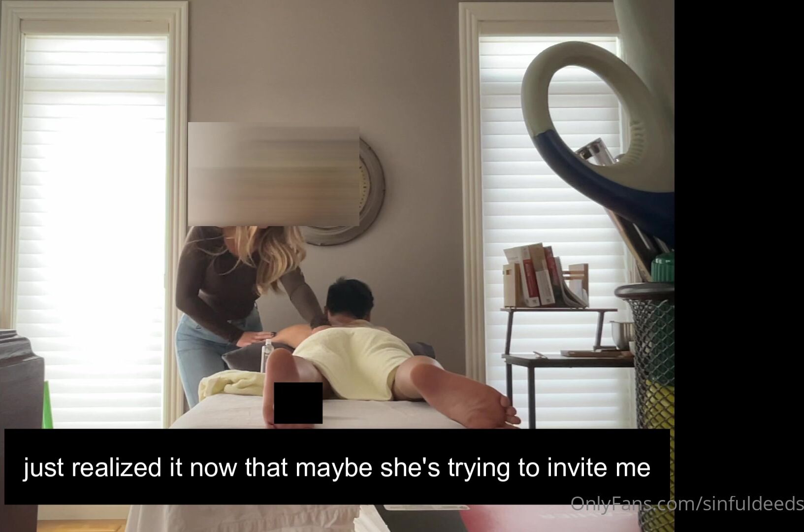 Это горячее видео на OnlyFans показывает, как сексуальный массажист sinfuldeeds соблазняет клиента огромным членом.