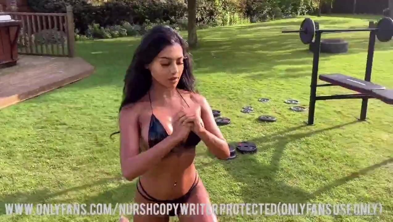 Nursh teases in a bikini before stripping naked for a steamy outdoor workout and hot tub fuck session in this leaked OnlyFans video.
