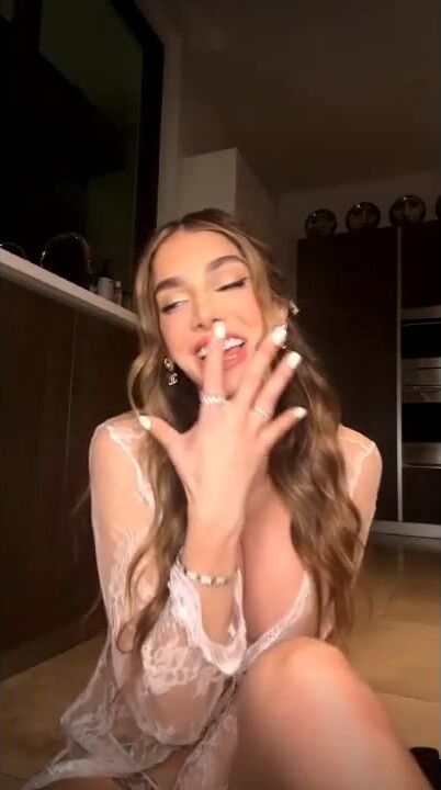 Lyna Perez puts on a jaw-dropping fishnet fuckfest sucking off a huge cucumber like a pro in her latest dirty OnlyFans video