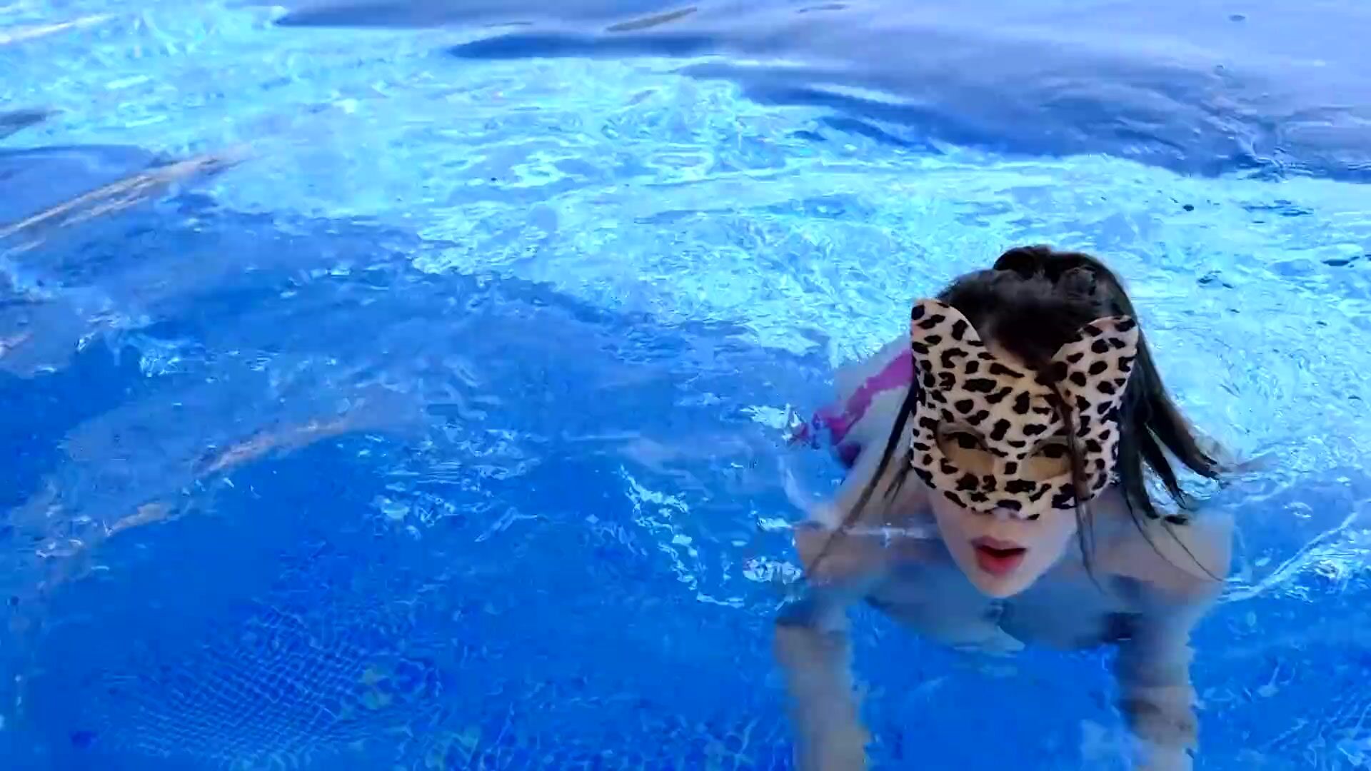 Сводная сестра занимается оральным сексом со своим сводным братом у бассейна.