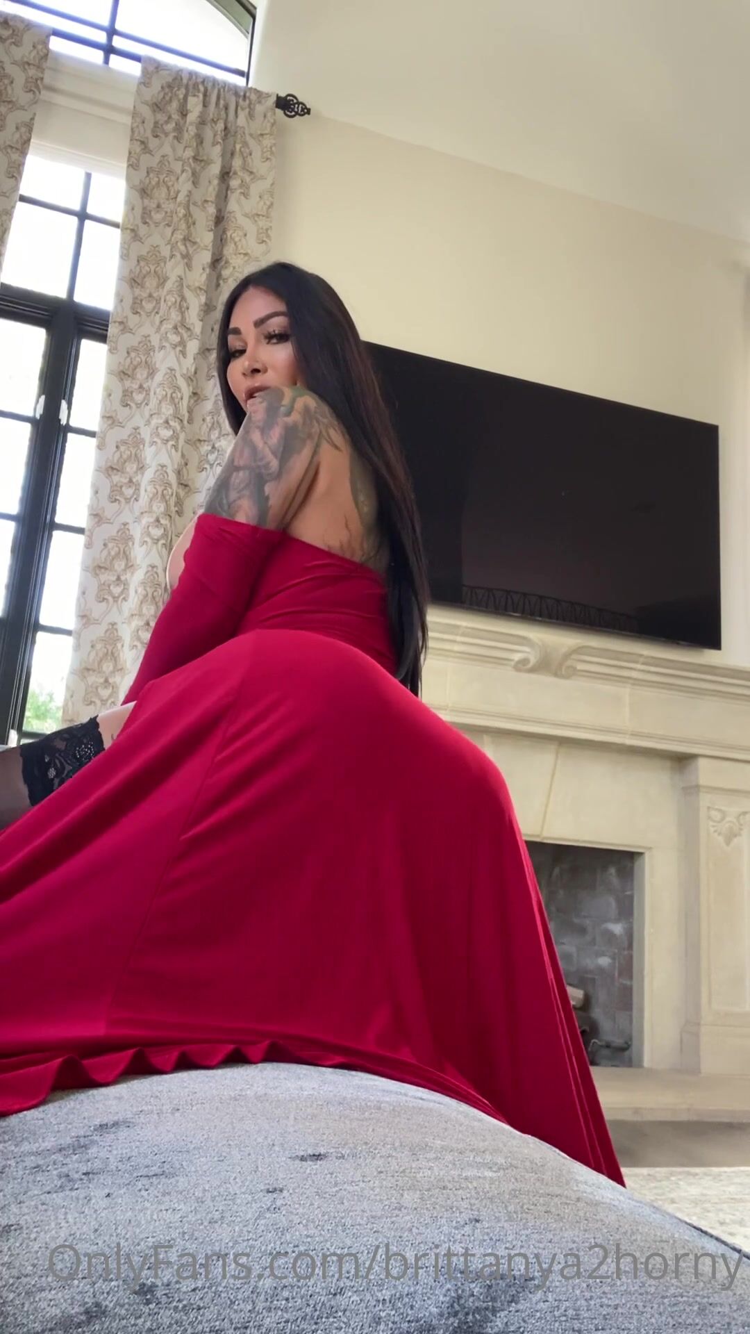 Суперсексуальная Бриттанья Разави в красном платье, ласкает себя пальцами перед свиданием. Видео с OnlyFans.