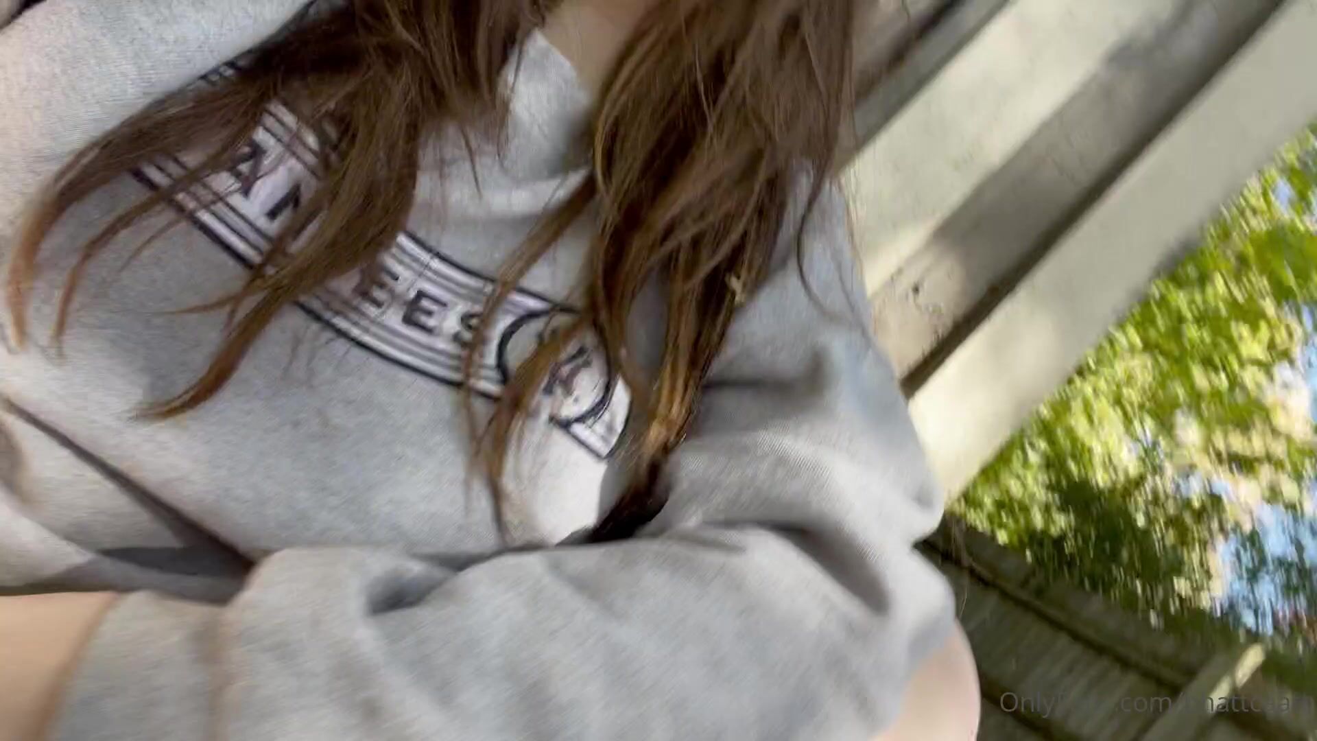 Phatcat'in açık havada yayınladığı, kremalı deliğini ve tahrik edici göğüslerini gösteren OnlyFans videosu.
