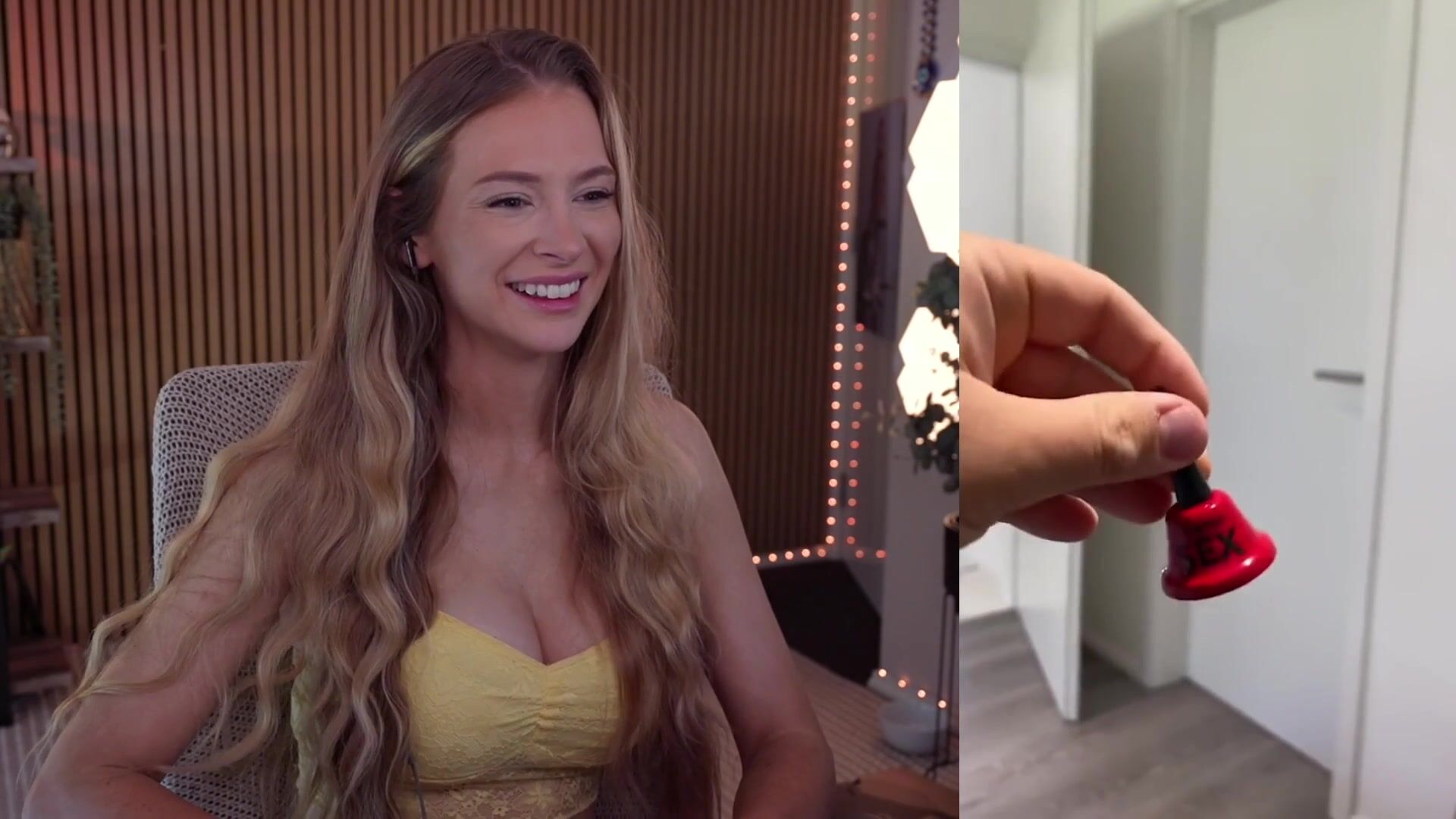 Blonde Petite Cutie Bebahan__NOTTY DUNGEON teases in a yellow top as she shares her favorite butt plug in this steamy video.