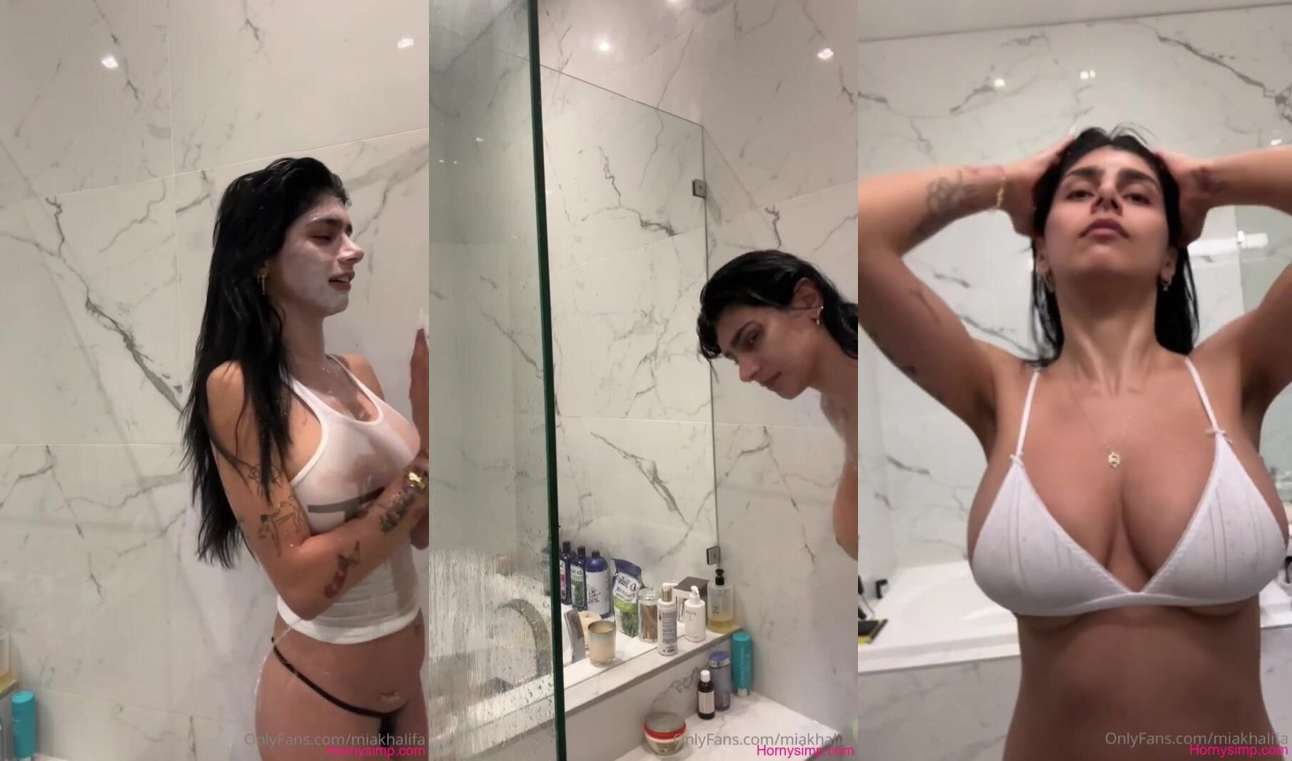Mia Khalifa Teases in See Thru Tank Top During Steamy Nude Shower Show
