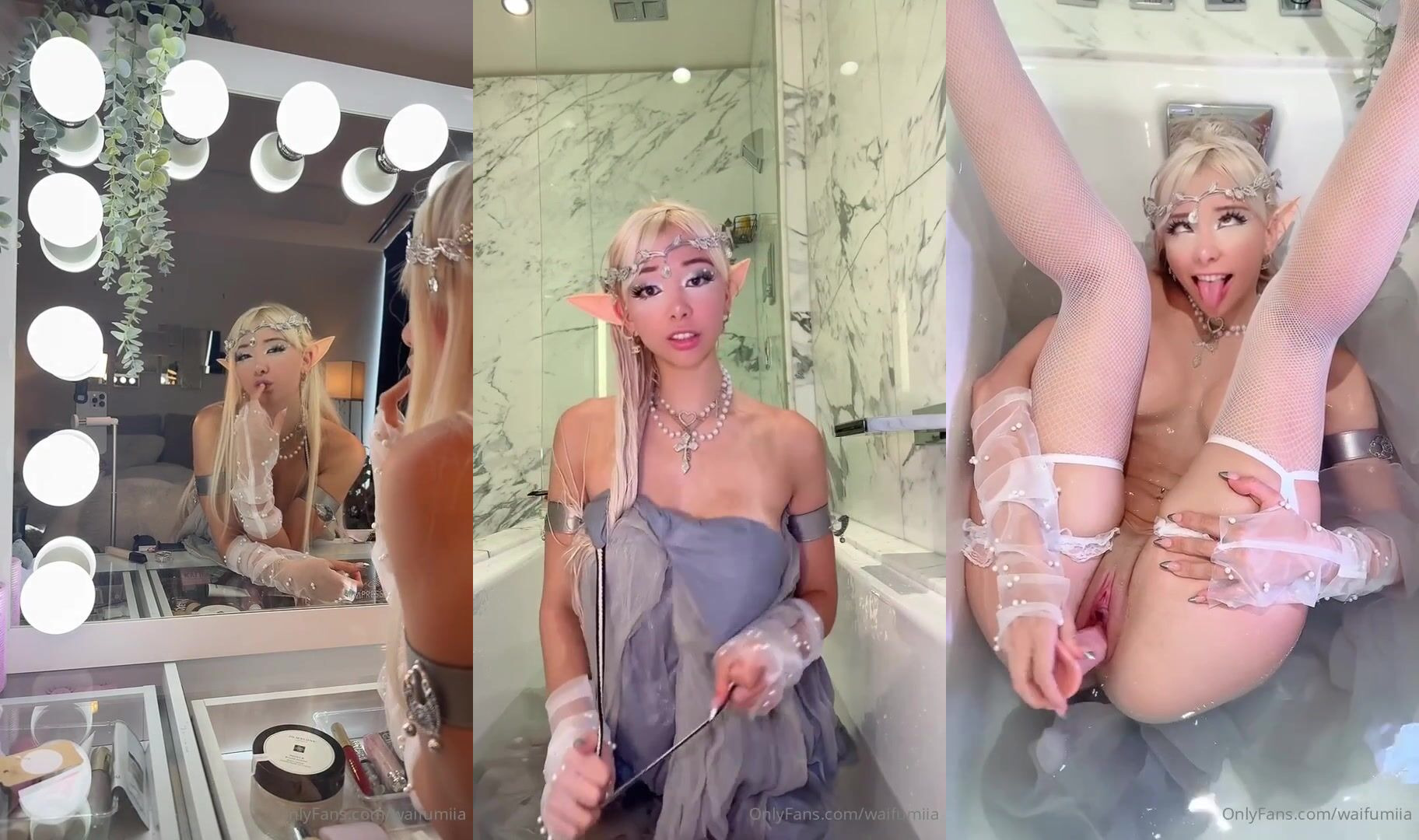 Waifumiia, bir joi videosunda ıslak peri kostümüyle tek başına küvette ateşli anlar yaşarken, baştan çıkarıcı pozlar veriyor.