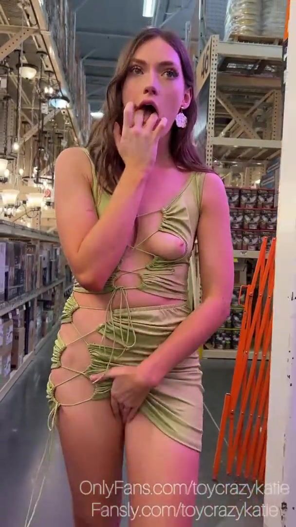 Oyuncaklara düşkün Katie - Home Depot'ta dolaşırken soyunuyorum.