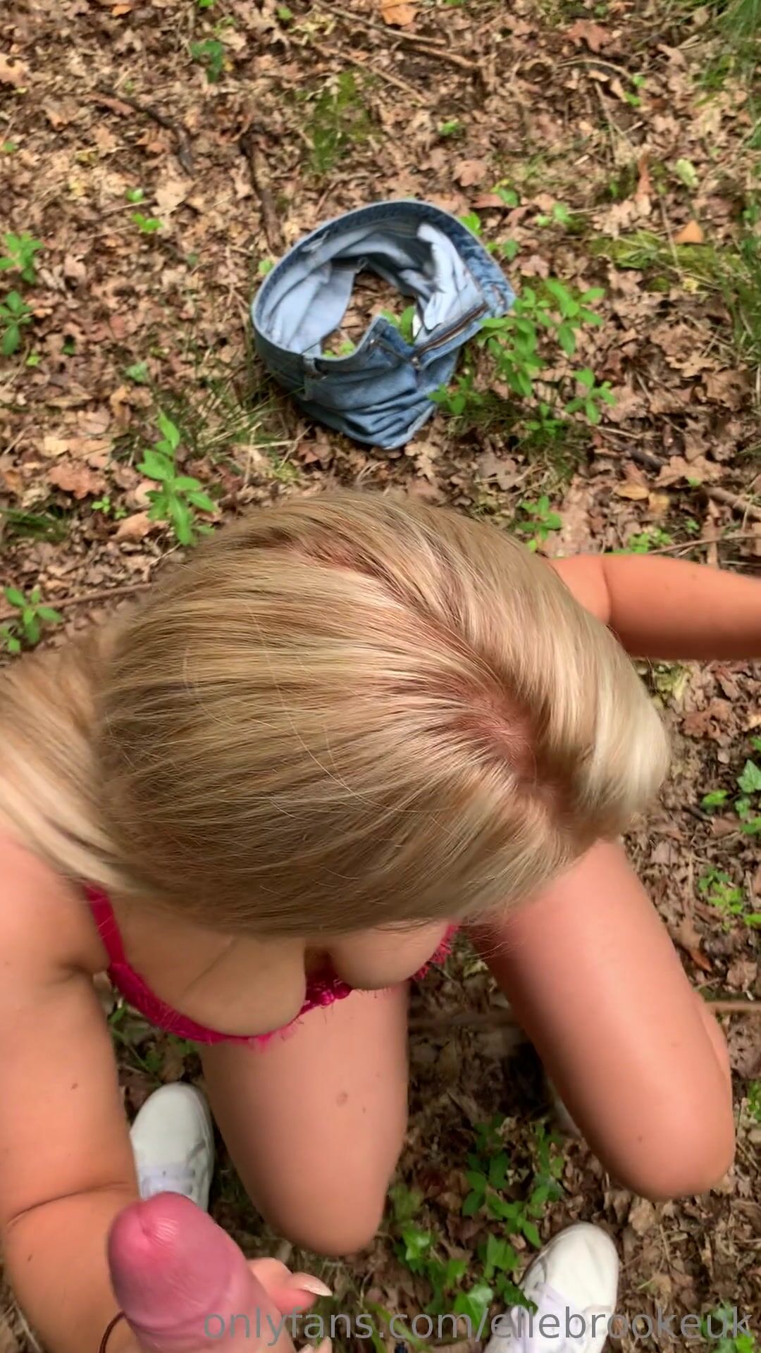 Elle Brooke, çalılıkların ortasında ağzından salyalar akarak oral seks yapıyor.