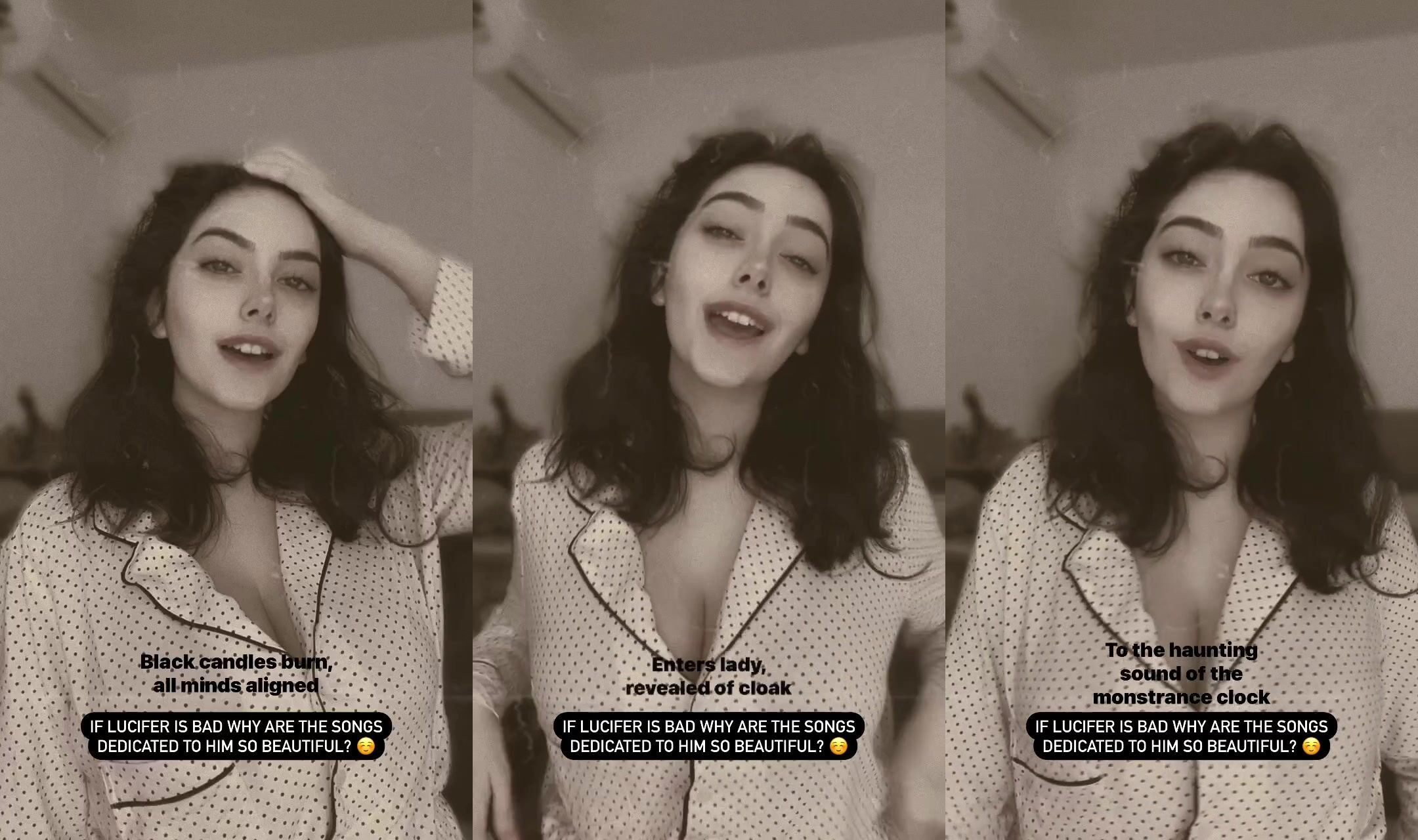 Shiftymine Seduces With Her Deep Cleavage Visible In A Playful Polka Dot Pajamas
