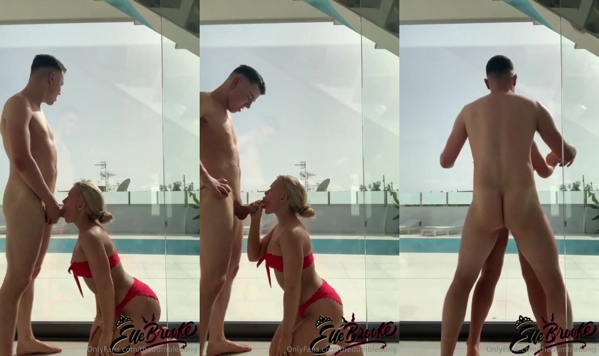OnlyFans star Elle Brooke in a red bikini teases her man before giving a Blowjob and fucking his cock