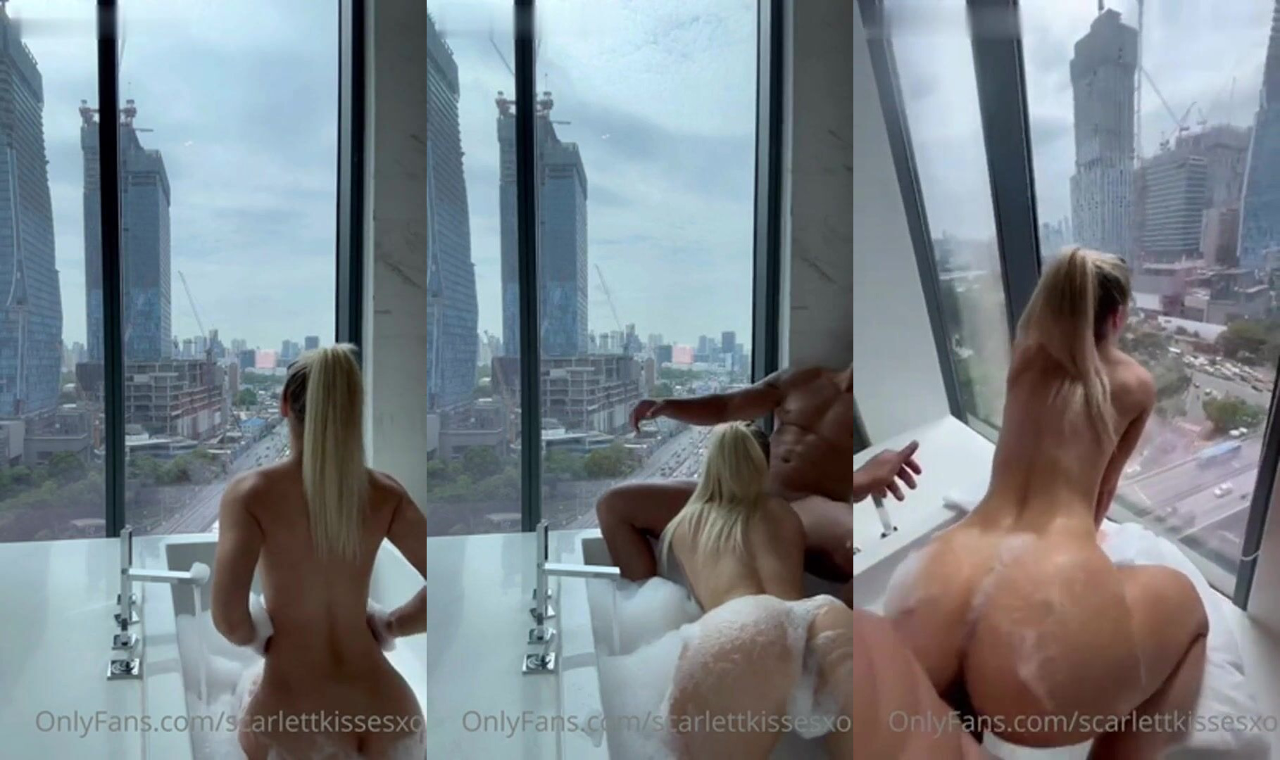 Blonde OnlyFans babe ScarlettKissesXO gets naked in a Bangkok hotel bathtub for a steamy tease with a city view in this leaked video.