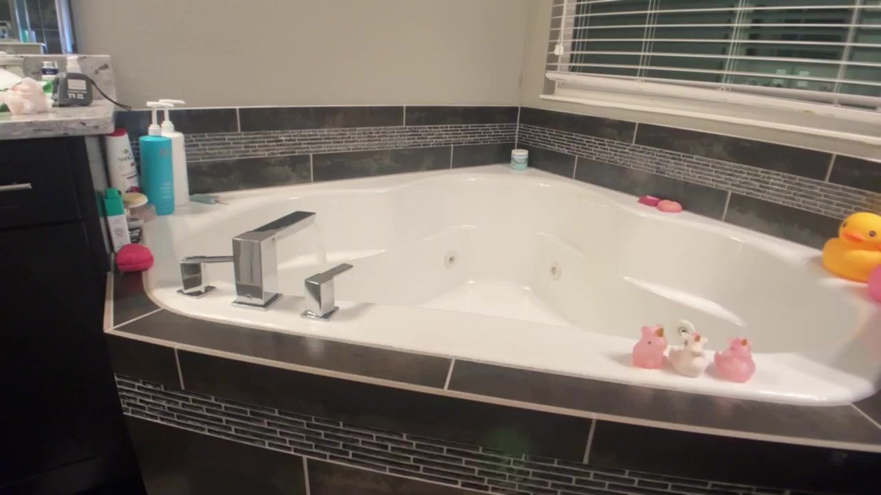 Strawberrytabby Curvy Goddess with Big Boobs plays with her pussy in the Bathroom using a glass dildo