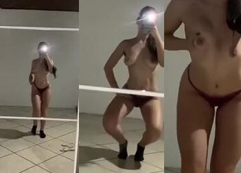 Lustful vixen Letícia Vargas stars in a leaked nudes video teasing her tight body in the mirror