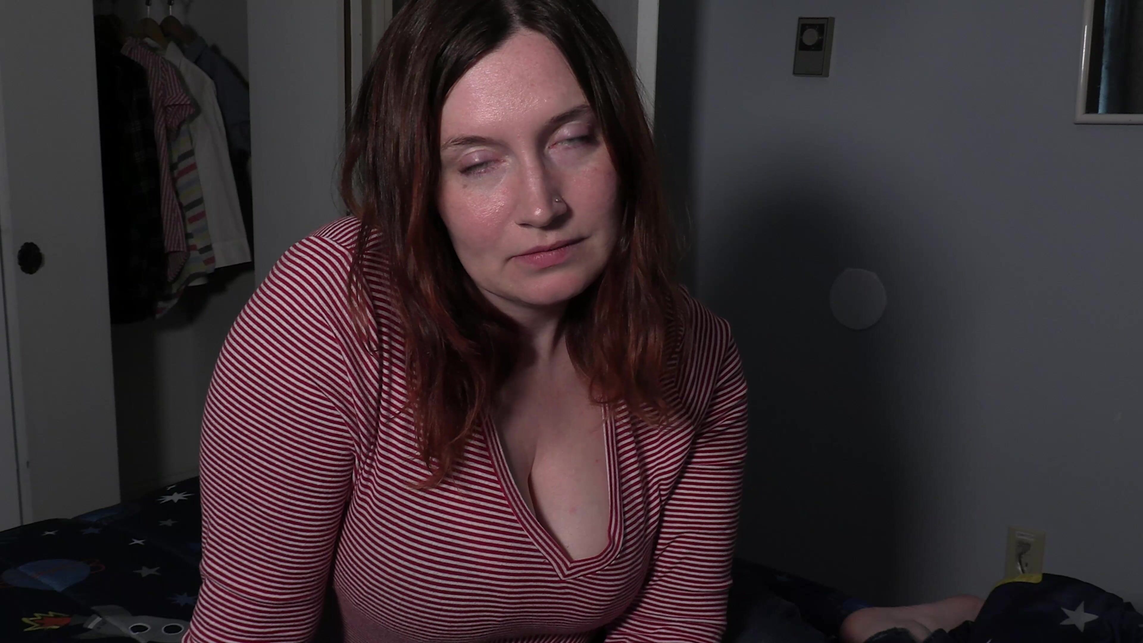 贝蒂(Bettie)捆绑继母开始挑逗她儿子的阴茎,并在床上骑乘(第一人称视角视频)