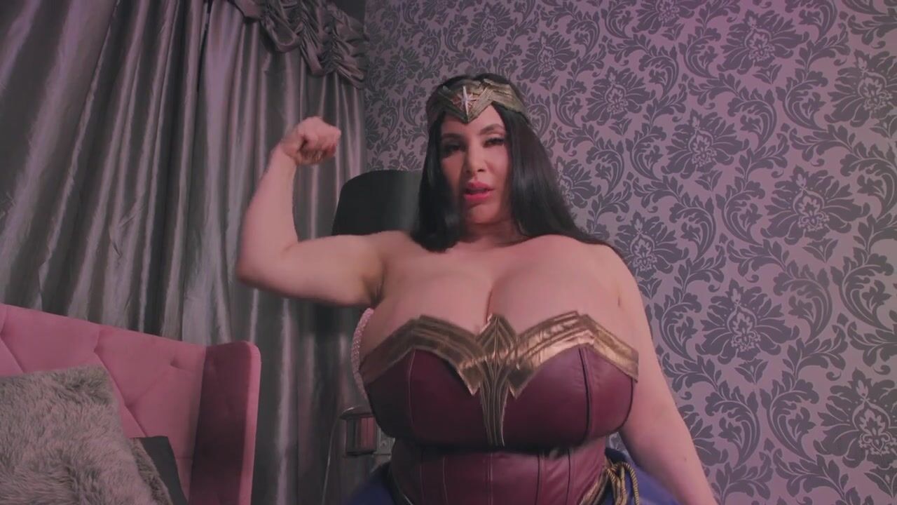 Curvy Goddess Korina Kova strips out of her superheroine costume in this seductive masturbation video.