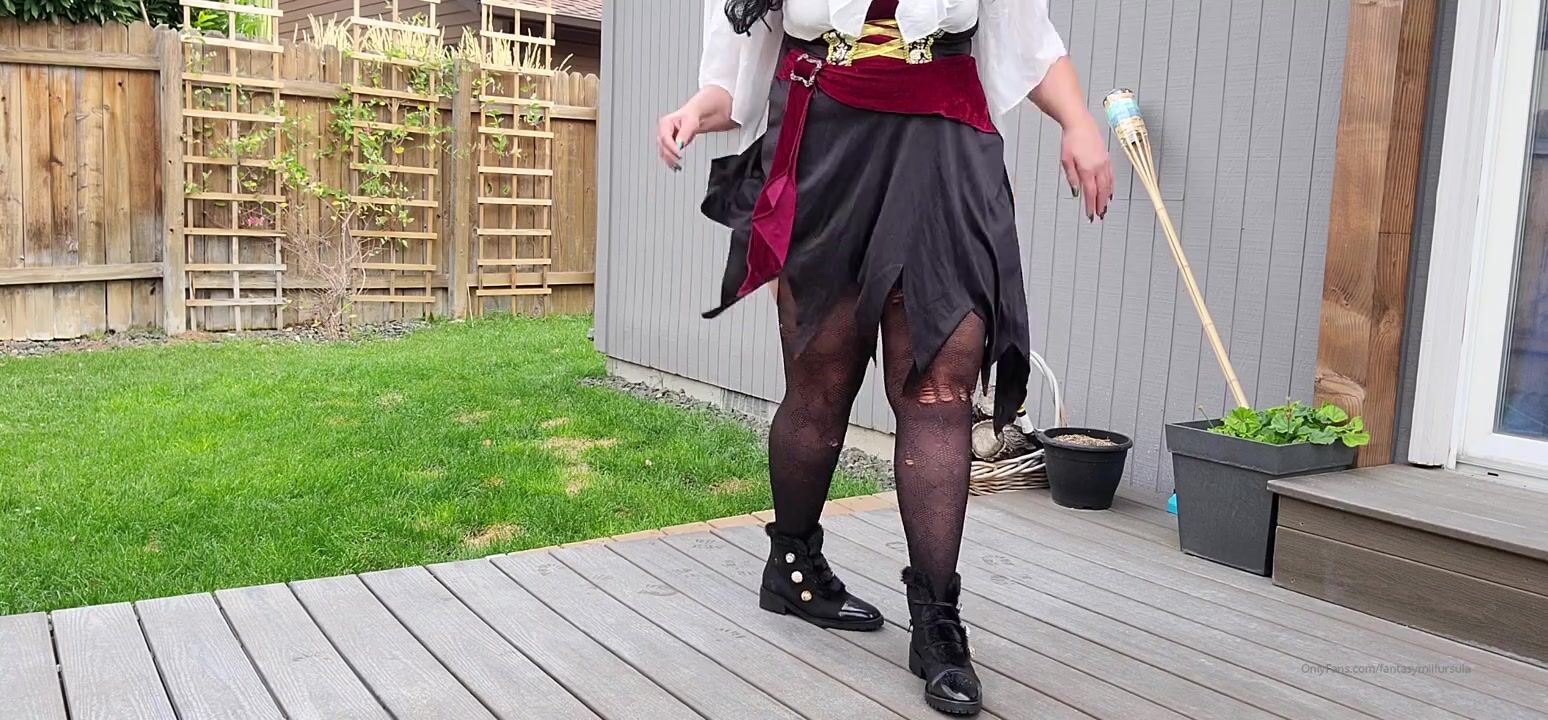 Curvy goddess fantasymilfursula teases in her backyard wearing a sheer bodystocking and black boots in this seductive OnlyFans video.