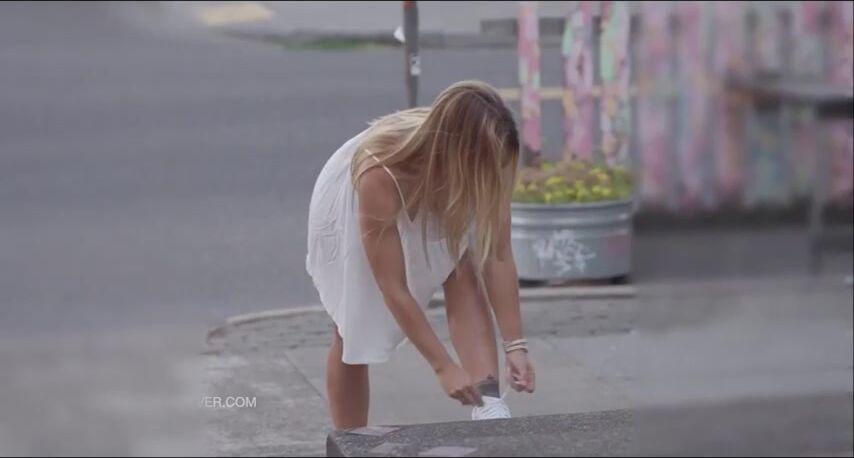 Rocky goes braless in a revealing dress, teasing her perky tits in public and driving every dude wild in this insane public porn video